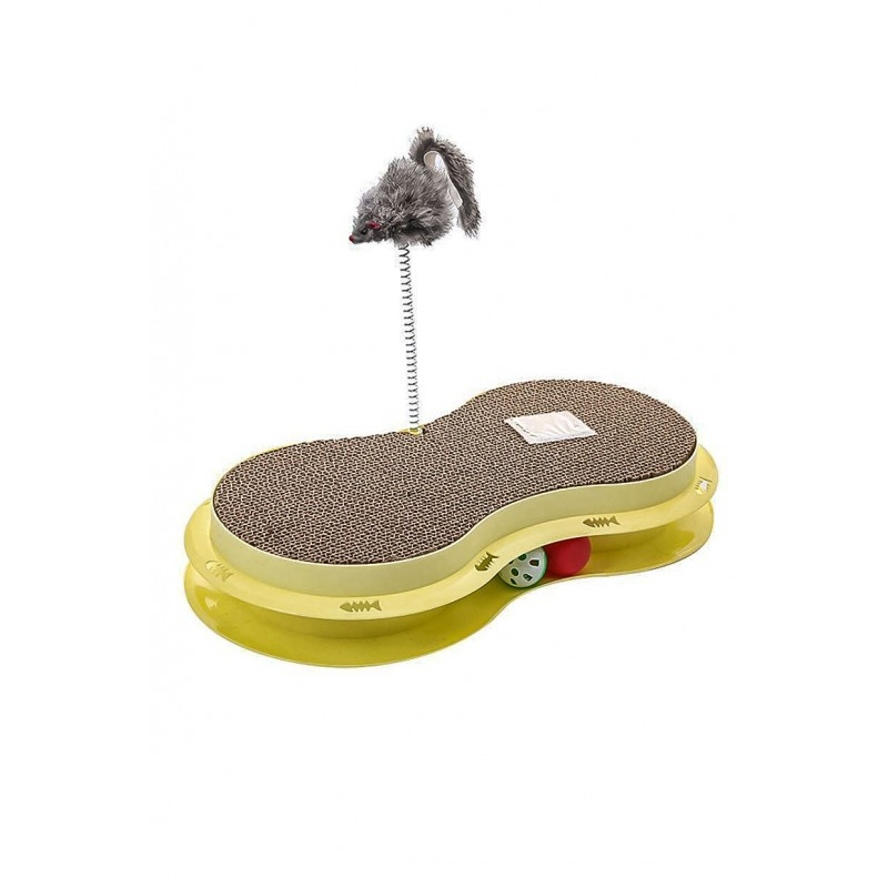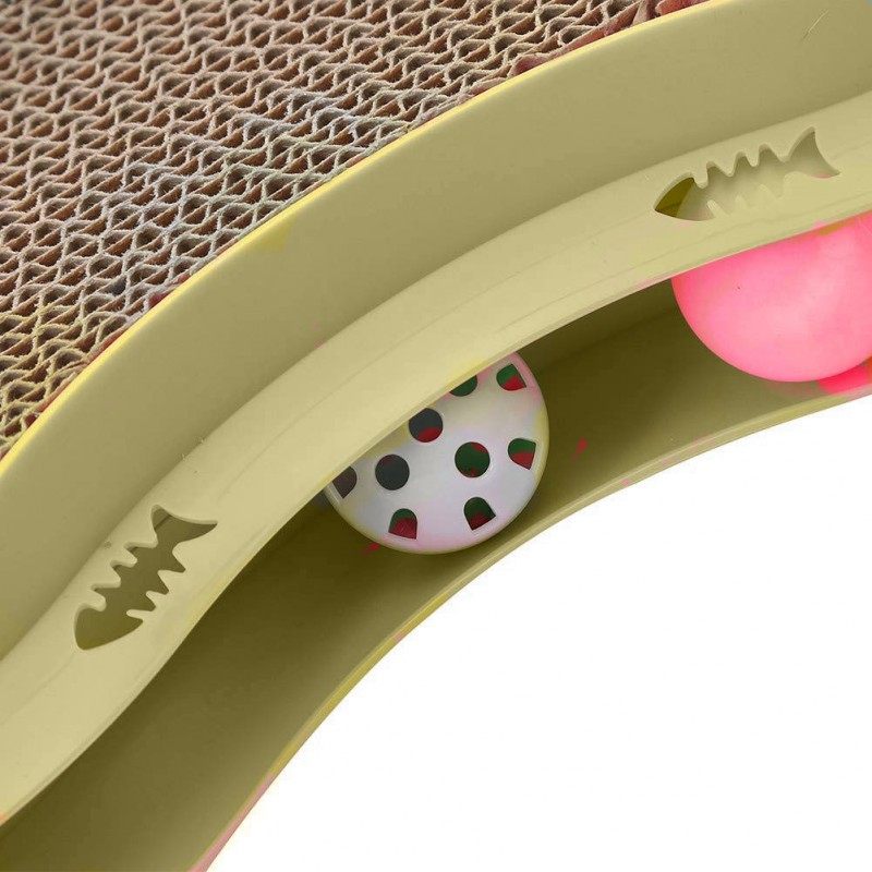 Ansamblul pentru pisici are un canal cu 2 bilute mici, iar pisica ta se poate juca cu mingiutele care se plimba pe acest canal