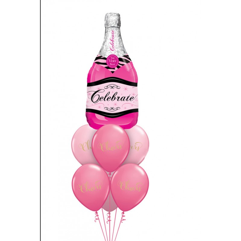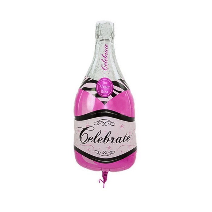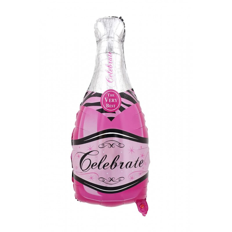 Balon Champagne Shower, din folie de aluminiu, 80 cm , forma sticla de sampanie, roz/argintiu, Doty