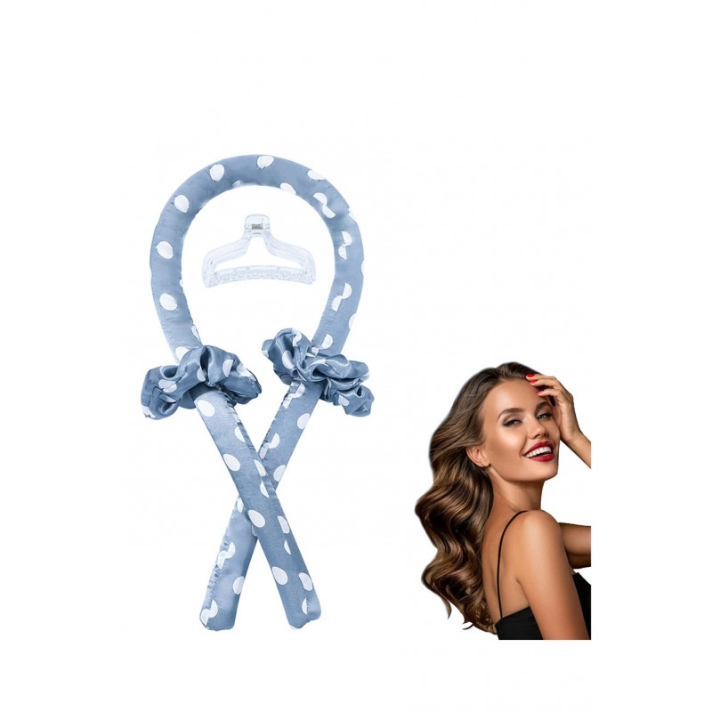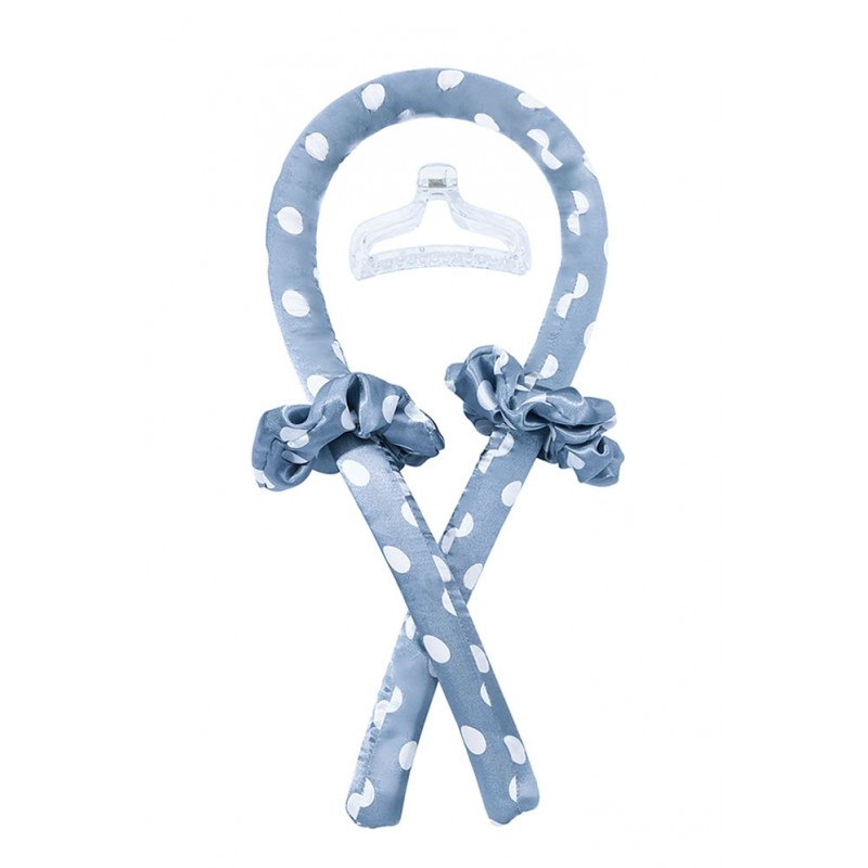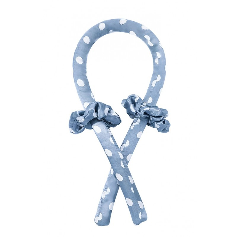 Bigudiu tip panglica RibbonCurl Dots, accesorii incluse, usor de utilizat, 90 cm, blue cu buline albe, Doty