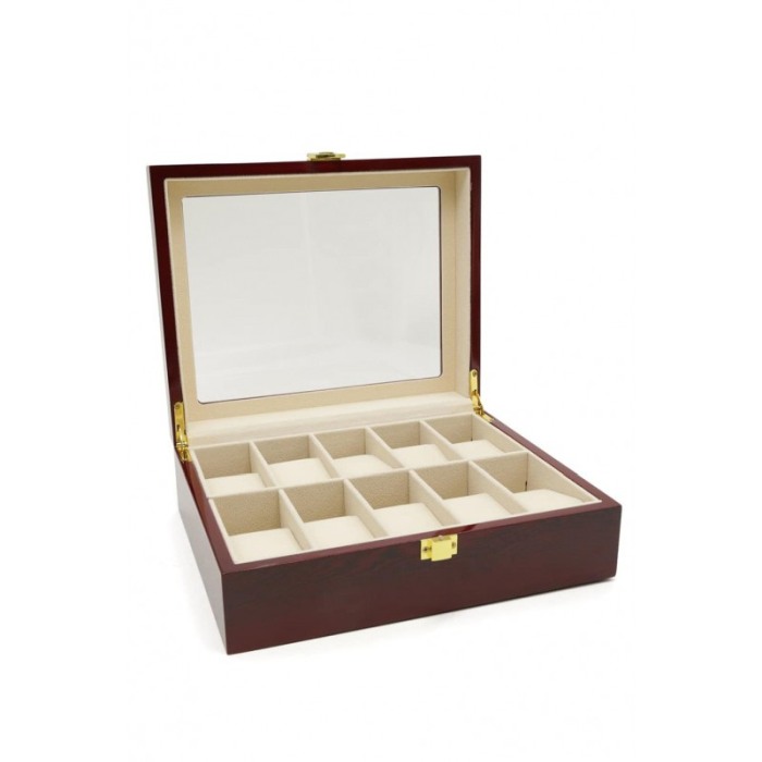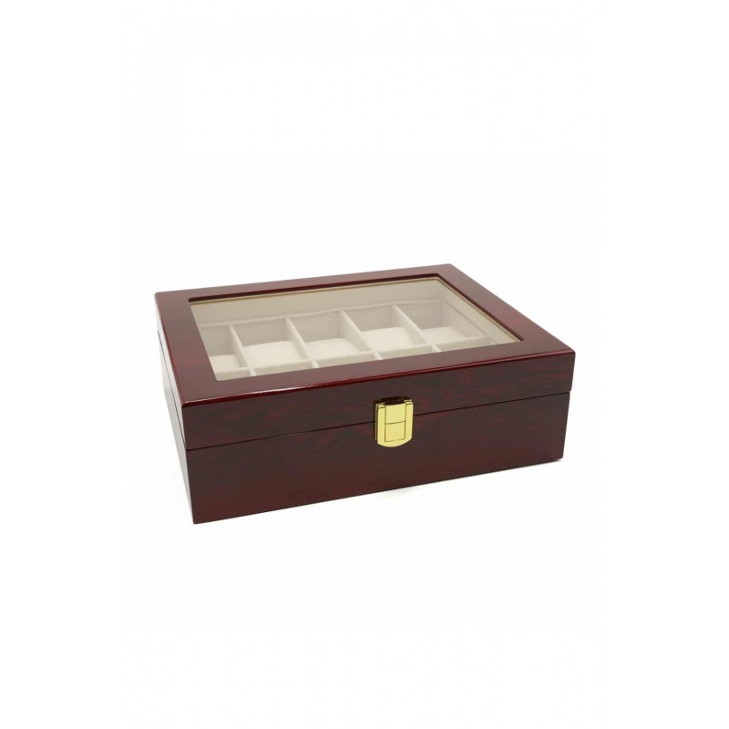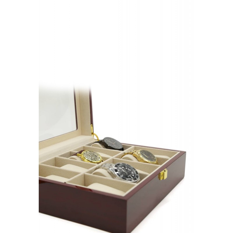 Cutie depozitare si organizare de lux, spatiu 10 ceasuri, lemn de calitate, mahon lucios, doty