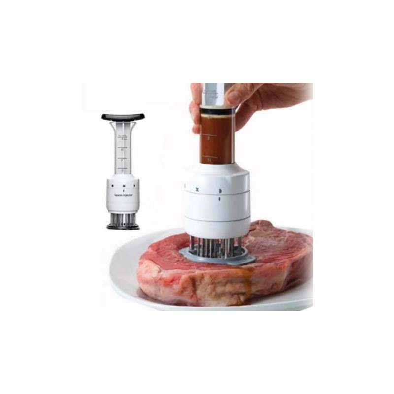 Fragezitor de carne cu injector sos, 2 trepte. Prepara fripturi delicioase ca un adevarat bucatar sef. Noul aparat de injectat sosul preferat dar si de fragezit va deveni aliatul tau in bucatarie.