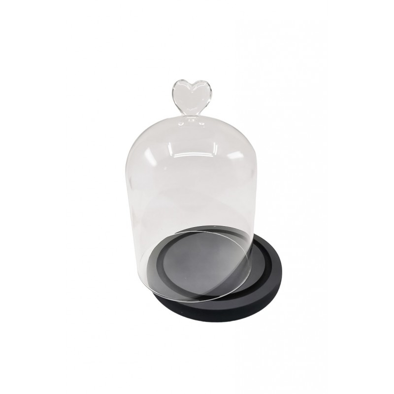 Obiect decorativ Heart Deco Glass, din sticla si lemn, 23x16 cm, transparent, Doty