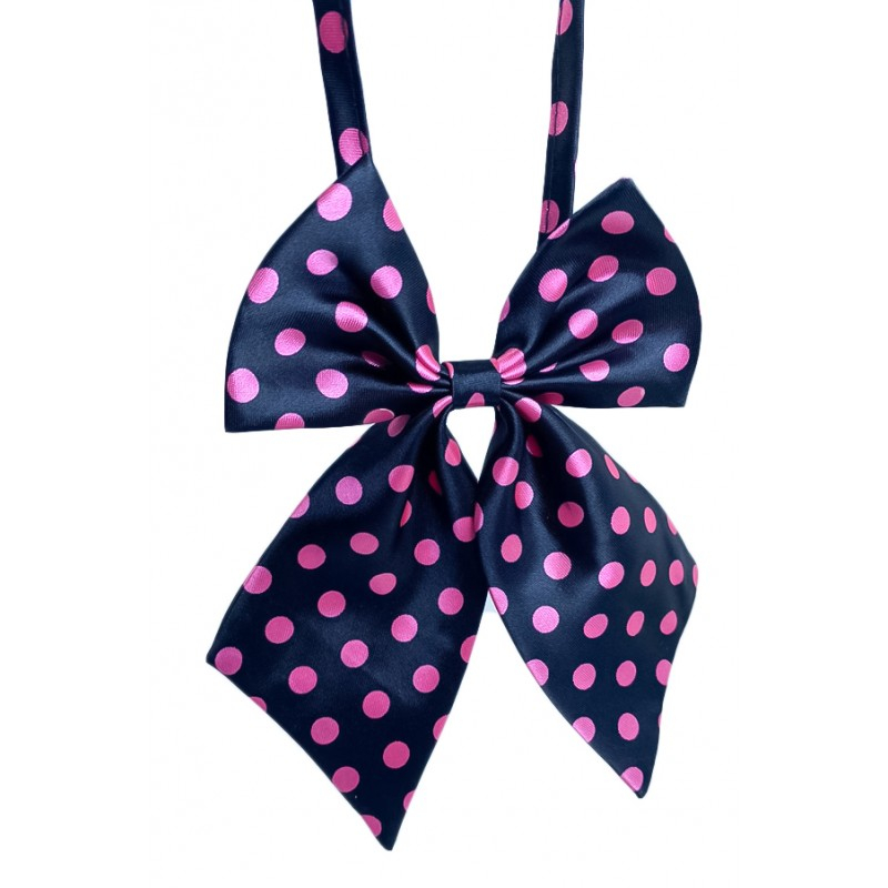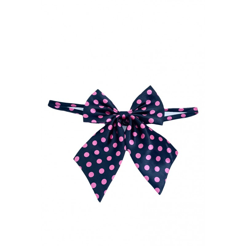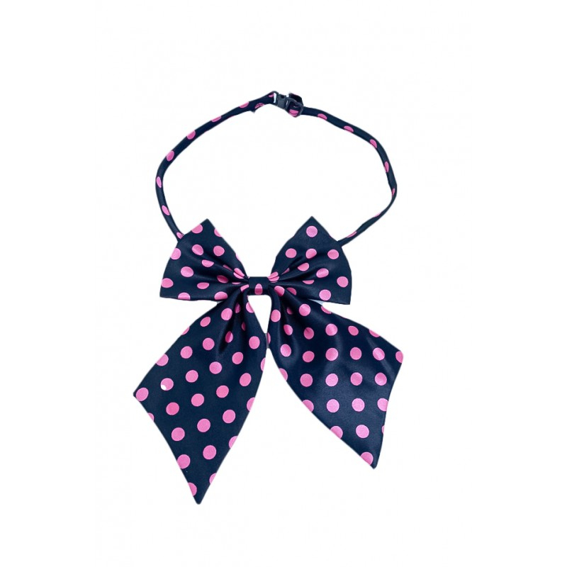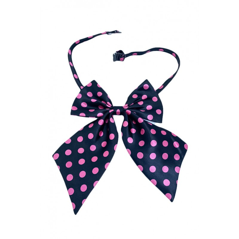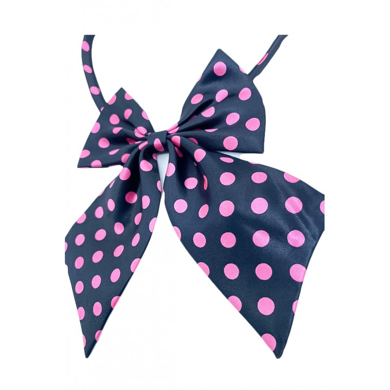 Papion tip funda Fashion Ally , pentru animale de companie, mici,44-32 cm, reglabila, model buline, negru/roz,Doty