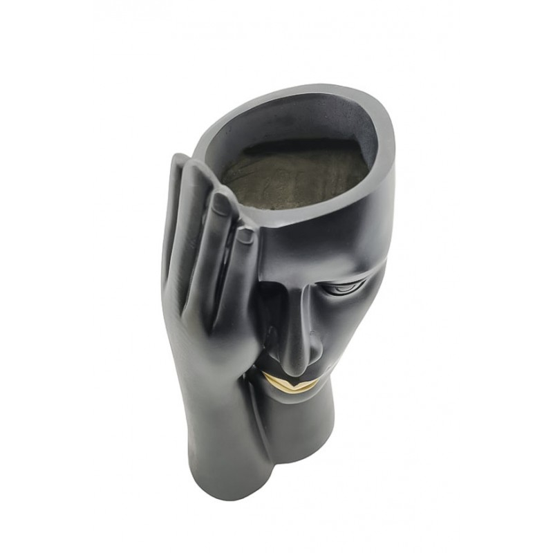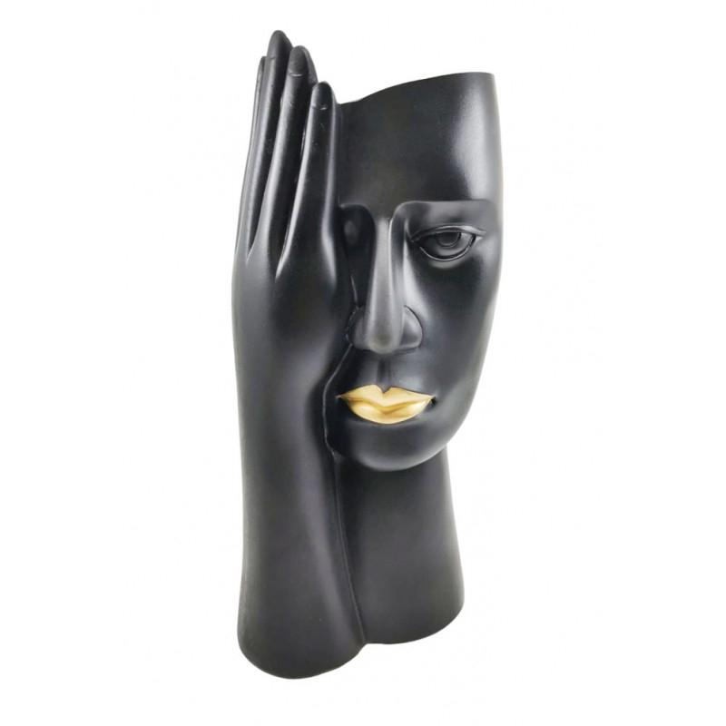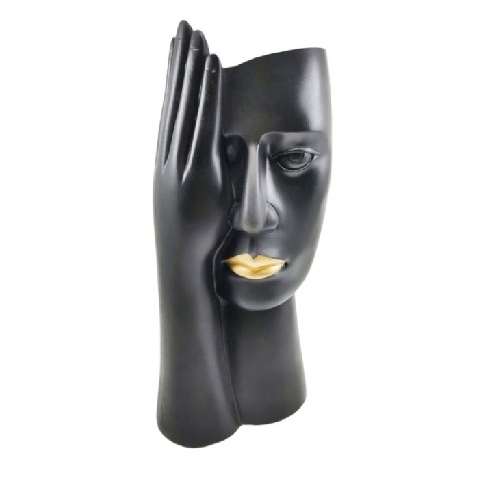 Vaza decorativa BlackForm, lucrata manual din rasina, forma chip uman, 30x12 cm, negru, Doty