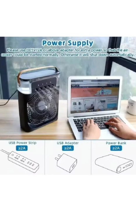 Ventilatorul portabil BrizaGlow 3 in 1 Doty este solutia ideala pentru zilele toride de vara, oferind functii esentiale intr-un singur dispozitiv compact: ventilare, umidificare si iluminare ambientala.