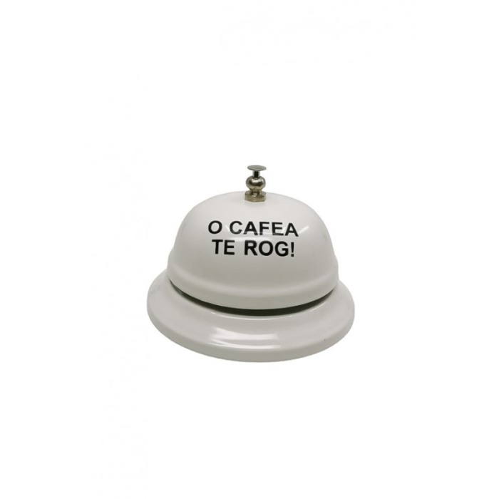 Sonerie receptie,, O cafea te rog'', din metal, cadou haios, alb, 8x6x6 cm, Doty