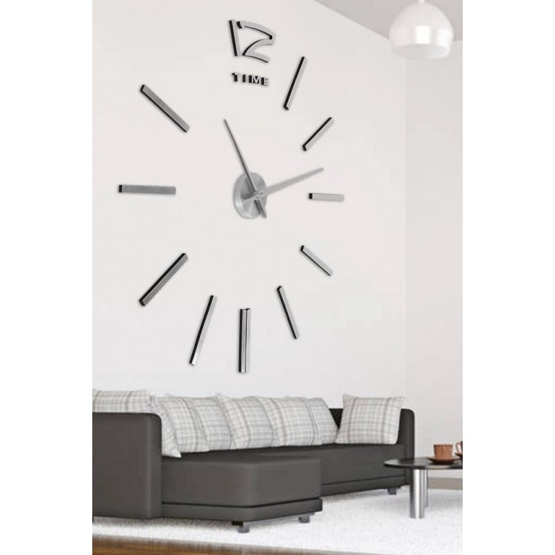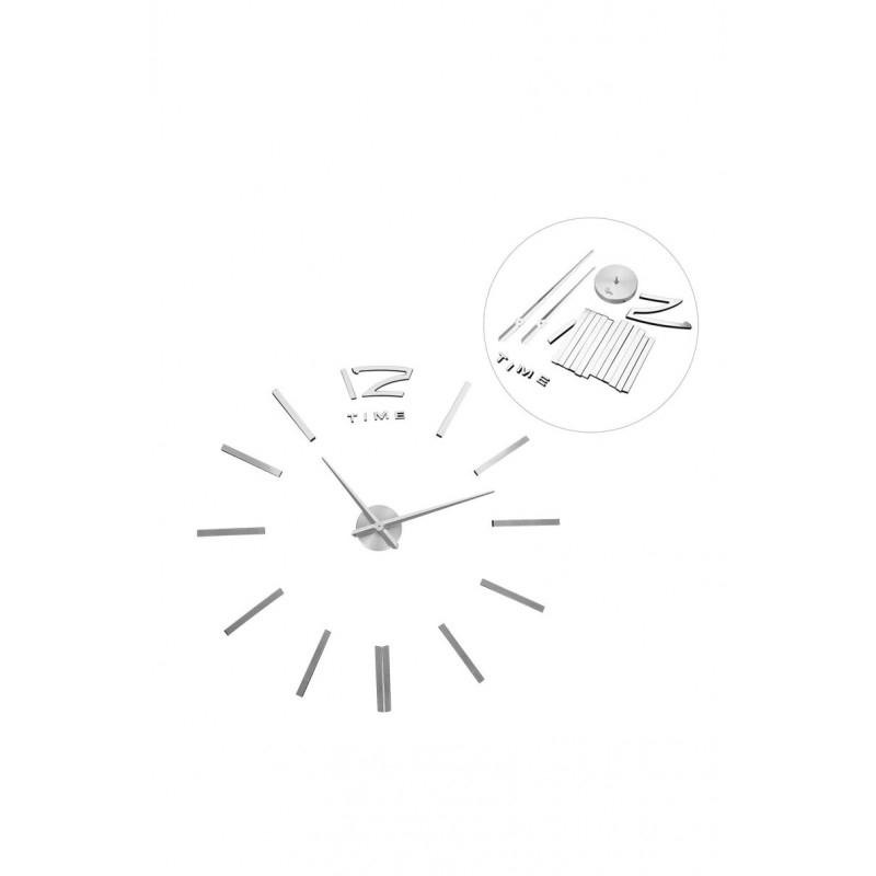 Ceas de perete Silver3DWatch, se lipeste de perete, design creativ, 100 cm, cifre iesite in relief, argintiu, Doty