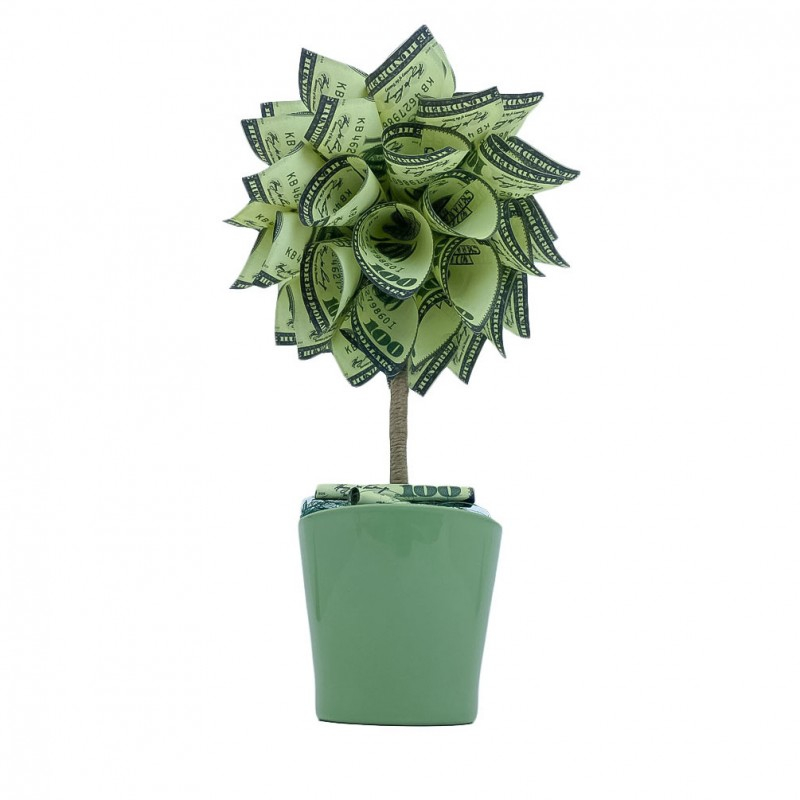 Copac decorativ USD Tree, in ghivechi, design creativ,model dolari, 34 cm, verde, Doty