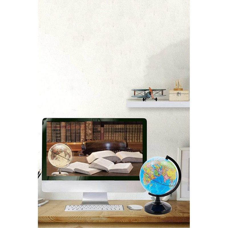 Mini glob pamantesc de birou, harta politica, 15x12 cm, albastru, rotativ, Doty®️