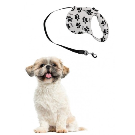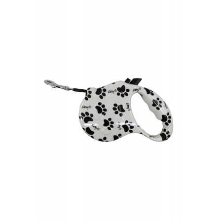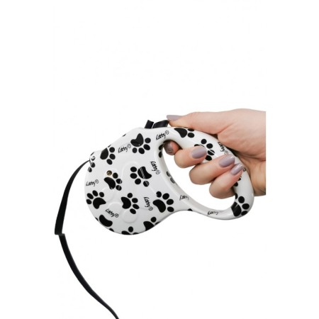 Lesa retractabila PlushLeash Doty®, 5m, design creativ cu labute, perfect pentru animalele de companie de talie medie, alb/negru