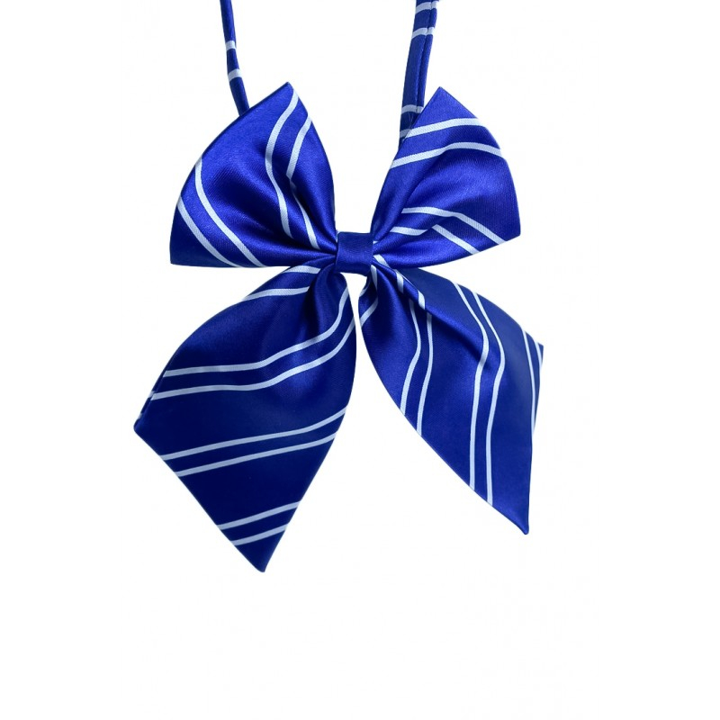 Papion tip funda Fashion Ally , pentru animale de companie, mici,44-32 cm, reglabila, model dungi, albastru/alb