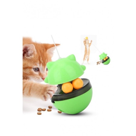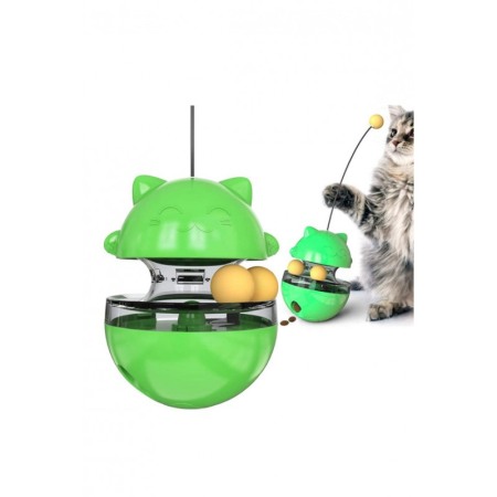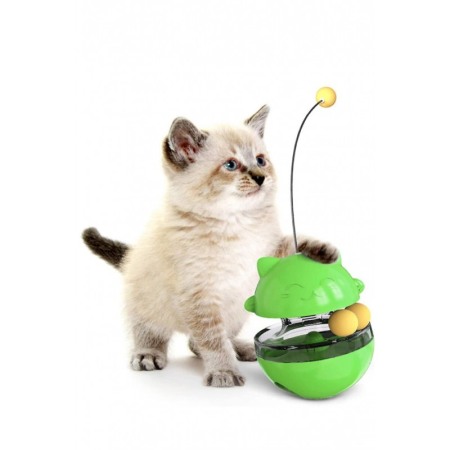 Jucarie interactiva 2 in 1 pentru pisici GattoBall, cu eliberare recompensa, mingi incluse, verde, 13x9 cm, Doty®️